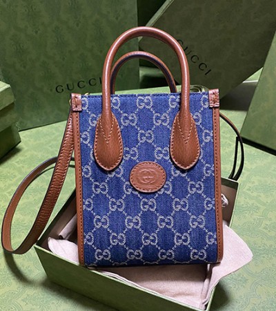 • [홍콩명품.Gucci] 구찌 23SS 데님 자카드 인터로킹 G 미니 토트백 671623, BGM1067, GU3, 홍콩명품가방,손목가방,크로스백,핸드백,구매대행,무브타임