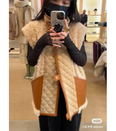 • [홍콩명품.Loro Piana] 로로피아나 23SS 로고 여성 가죽 시어링 조끼 베스트, BM10572, PG, 홍콩명품의류,구매대행,온라인명품