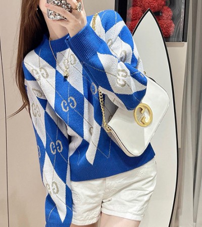 • [홍콩명품.Gucci] 구찌 24SS 로고 패턴 여성 니트 스웨터 (블루), BM11613, TBG, 홍콩명품의류,구매대행,온라인명품