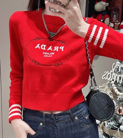 [홍콩명품,PRADA] 프라다 24SS 로고 자수 여성 니트 스웨터 (레드), BM11633, TBG, 홍콩명품의류,구매대행,온라인명품 > 여성몰