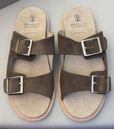 [홍콩명품.Brunello Cucinelli ] 브루넬로쿠치넬리 24SS 로고 레더 가죽 바겐스탁 슬리퍼 (브라운), SE2589, S2, 홍콩명품쇼핑몰,무브타임,악세사리,잡화,생활용품 > 신발