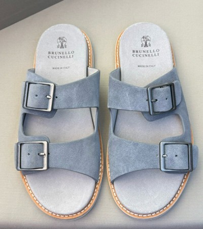 [홍콩명품.Brunello Cucinelli ] 브루넬로쿠치넬리 24SS 로고 레더 가죽 바겐스탁 슬리퍼 (그레이), SE2593, S2, 홍콩명품쇼핑몰,무브타임,악세사리,잡화,생활용품 > 신발