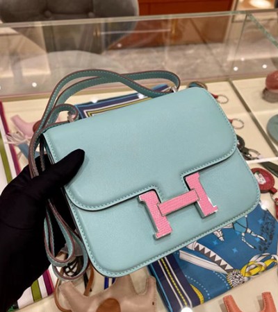 • [홍콩명품.Hermes] 에르메스 24SS 로고 19CM SWIFT 레더 가죽 크로스백 핸드백 (스카이블루), BGM2891, H3, 홍콩명품가방,명품쇼핑몰,크로스백,핸드백,구매대행,무브타임
