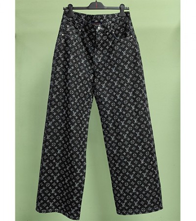 • [홍콩명품.LOUIS VUITTON] 루이비통 24SS 로고 모노그램 오버핏 데님 팬츠 진 청바지 (블랙), BM13713, JL, 홍콩명품의류,구 매대행,온라인명품