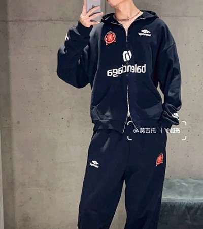 [홍콩명품.BALENCIAGA] 발렌시아가 24SS 로고 유니폼 후드 바람막이 자켓 + 조거 팬츠 바지 상하의 세트 (블랙), BM13863, JL, 홍콩명품의류,구 매대행,온라인명품 요약정보 및 구매
