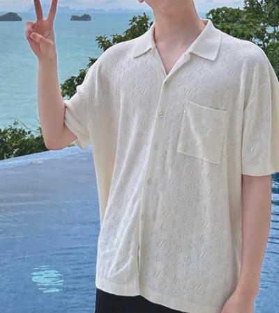 [홍콩명품.LOUIS VUITTON] 루이비통 24SS 로고 모노그램 카라 버튼 반팔 티셔츠 (화이트), BM13924, JL, 홍콩명품의류,구 매대행,온라인명품 > 남자의류