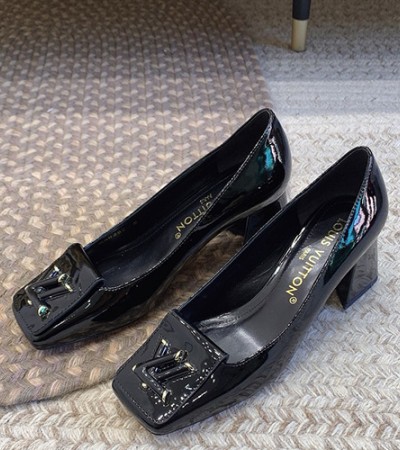 • [홍콩명품.LOUIS VUITTON] 루이비통 24SS 로고 여성 SHAKE 레더 가죽 5.5cm굽 구두 (블랙), SE3306, SMS, 명품스니커즈,운동화,구두,로퍼,하이탑,신발