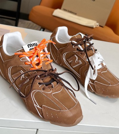 • [홍콩명품,MIU MIU] 미우미우 24SS 로고 뉴발란스 콜라보 여성 스니커즈 운동화 (브라운), SE3318, SMS, 명품스니커즈,운동화,구두,로퍼,하이탑,신발
