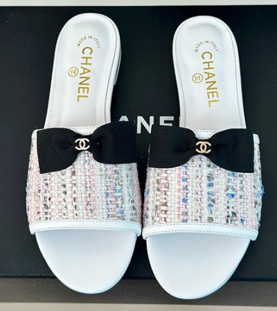 • [홍콩명품.CHANEL] 샤넬 23SS 로고 여성 리본 장식 샌들 슬리퍼 (화이트), SE3424, ALW, 명품스니커즈,운동화,구두,로퍼,하이탑,신발