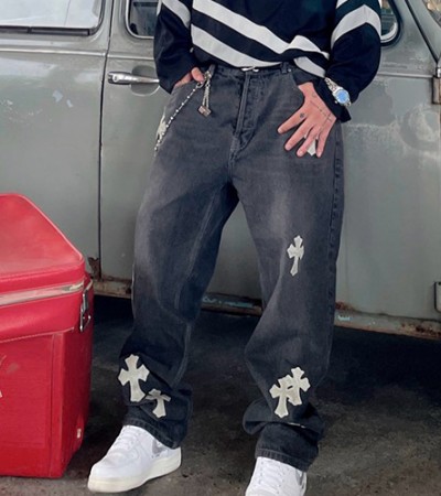 • [홍콩명품.Chrome Hearts] 크롬하츠 24SS 크로스로고 데님 팬츠 진 청바지 (블랙), BM14726, TT, 홍콩명품의류,구매대행,온라인명품