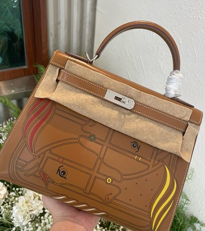 • [홍콩명품.Hermes] 에르메스 24SS 로고 패턴 KELLY 28 레더 가죽 핸드백 토트백 (브라운-은장), BGM3438, H3, 홍콩명품가방,명품쇼핑몰,크로스백,핸드백,구매대행,무브타임