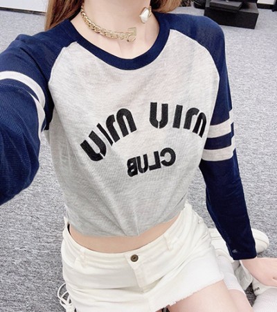 • [홍콩명품,MIU MIU] 미우미우 24SS 로고 여성 니트 긴팔 티셔츠 (2컬러), BM15302, TBG, 홍콩명품의류,구매대행,온라인명품