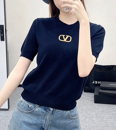 • [홍콩명품.Valentino] 발렌티노 24SS V로고 여성 니트 반팔 티셔츠 (네이비), BM15576, TBG, 홍콩명품의류,구매대행,온라인명품