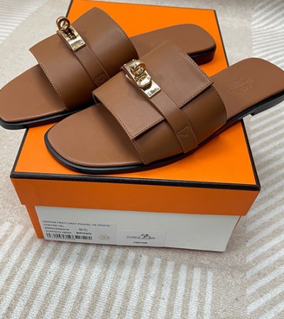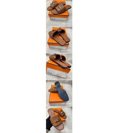 [홍콩명품.Hermes] 에르메스 24SS 로고 여성 KELLY 레더 가죽 샌들 슬리퍼 (브라운), SE4086, H3, 명품스니커즈,운동화,구두,로퍼,하이탑,신발 > 여성몰