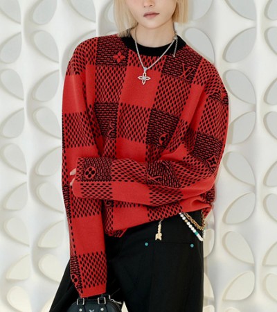 [홍콩명품.LOUIS VUITTON] 루이비통 24SS 로고 다미에 여성 오버핏 니트 스웨터 (레드), BM15978, TBG, 홍콩명품의류,구매대행,온라인명품 > 여성몰