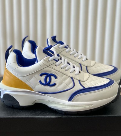 [홍콩명품.CHANEL] 샤넬 24SS 로고 여성 퀄팅 레더 가죽 스니커즈 운동화 (화이트-블루-카라멜), SE4112, ALW, 명품스니커즈,운동화,구두,로퍼,하이탑,신발 > 여성몰