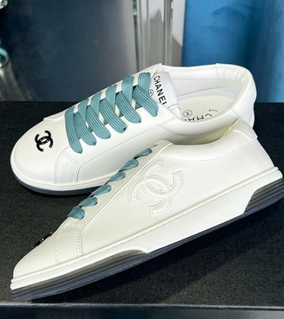 • [홍콩명품.CHANEL] 샤넬 24SS 로고 여성 레더 가죽 스니커즈 운동화 (화이트-블루), SE4115, ALW, 명품스니커즈,운동화,구두,로퍼,하이탑,신발