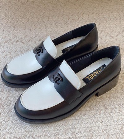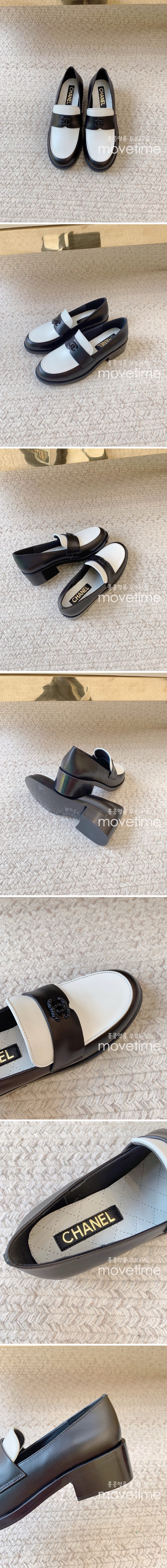 [홍콩명품.CHANEL] 샤넬 24SS 로고 여성 레더 가죽 굽 구두 로퍼 (블랙-화이트), SE4118, ALW, 명품스니커즈,운동화,구두,로퍼,하이탑,신발 > 여성몰