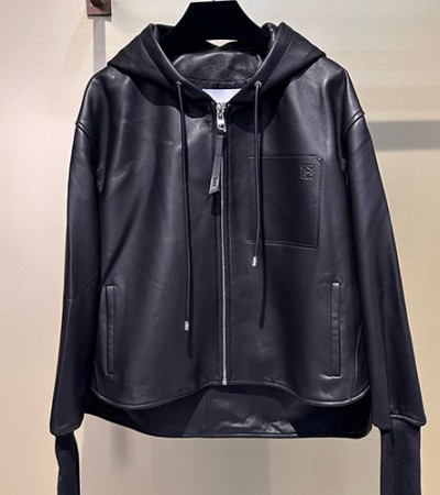 • [홍콩명품.LOEWE] 로에베 24SS 로고 여성 후드 레더 가죽 자켓  (블랙), BM17293, TOM, 홍콩명품의류,구매대행,온라인명품