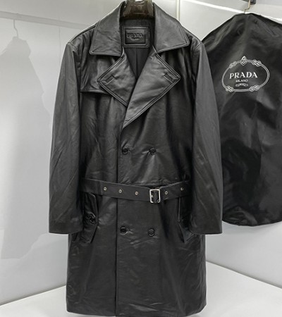 [홍콩명품,PRADA] 프라다 25SS 로고 레더 가죽 트렌치 코트 (블랙), BM18510, HOUSE, 홍콩명품의류,구매대행,온라인명품 > 남자의류