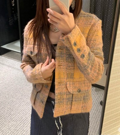 • [홍콩명품.CHANEL] 샤넬 25SS 로고 여성 V넥 트위드 자켓 (오렌지), BM19554, PG, 홍콩명품의류,구매대행,온라인명품