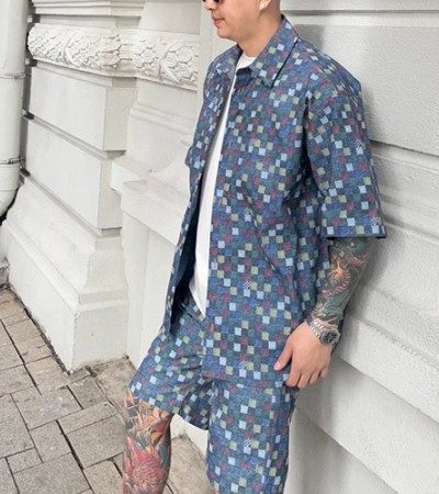 [홍콩명품.LOUIS VUITTON] 루이비통 25SS 로고 다미에 데님 반팔 남방 셔츠 + 데님 쇼츠 반바지 상하의 세트, BM19628, KB, 홍콩명품의류,구매대행,온라인명품 > 남자의류