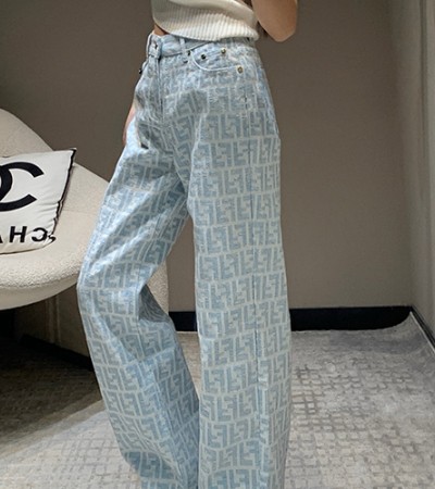 • [홍콩명품,FENDI] 펜디 25SS 로고 여성 FF패턴 오버핏 데님 팬츠 진 청바지, BM19747, TBG, 홍콩명품의류,구매대행,온라인명품