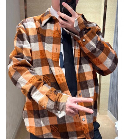 [홍콩명품.LOUIS VUITTON] 루이비통 25SS 로고 다미에 울 남방 셔츠 (오렌지), BM20001, S1F, 홍콩명품의류,구매대행,온라인명품 > 남자의류