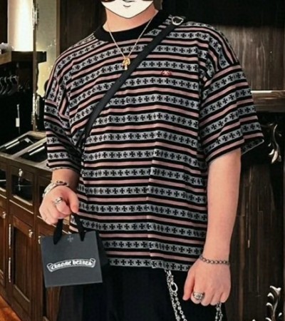 • [홍콩명품.Chrome Hearts] 크롬하츠 25SS 로고 스트라이프 반팔 티셔츠 (그레이), BM20117, KB, 홍콩명품의류,구매대행,온라인명품