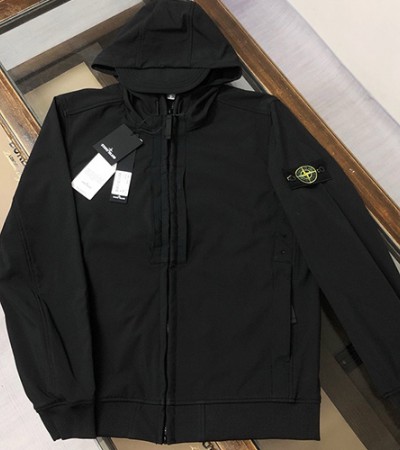 • [홍콩명품.Stone Island] 스톤아일랜드 25SS 로고 탈부착 후드 집업 자켓 + 조거 팬츠 바지 상하의 세트 (블랙), BM20352, G5, 홍콩명품의류,구매대행,온라인명품
