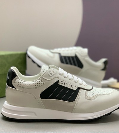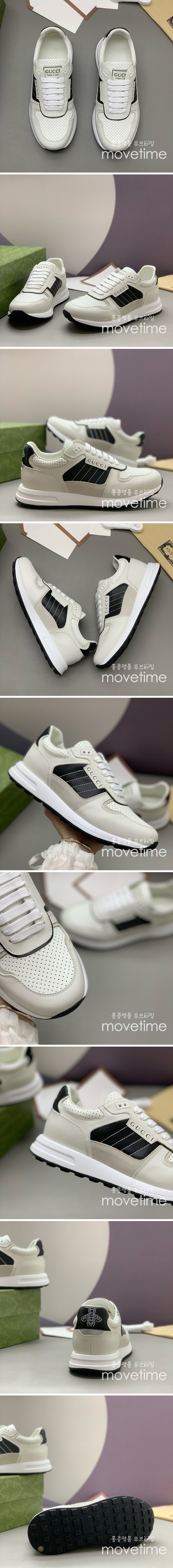• [홍콩명품.Gucci] 구찌 25SS 로고 레더 가죽 스니커즈 운동화 (화이트-블랙), SE4735, PMD, 명품스니커즈,운동화,구두,로퍼,하이탑,신발