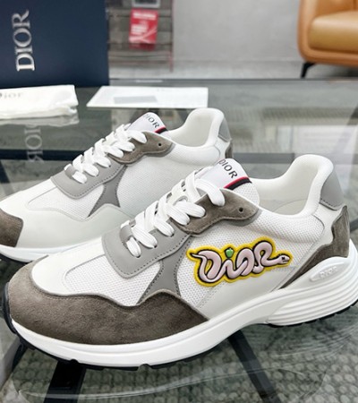 • [홍콩명품,Christian Dior] 디올 25SS 로고 레더 가죽 스니커즈 운동화 (화이트-브라운), SE4867, S2, 명품스니커즈,운동화,구두,로퍼,하이탑,신발