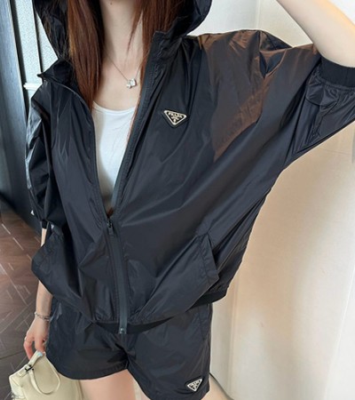 [홍콩명품,PRADA] 프라다 25SS 삼각로고 여성 후드 바람막이 자켓 + 미니 쇼츠 반바지 상하의 세트 (2컬러), BM20780, TBG, 홍콩명품의류,구매대행,온라인명품 > 여성몰