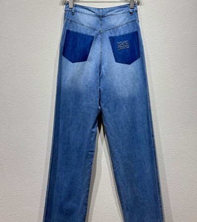 [홍콩명품,MIU MIU] 미우미우 25SS 로고 여성 워싱 오버핏 데님 팬츠 진 청바지, BM20942, KB, 홍콩명품의류,구매대행,온라인명품 > 여성몰