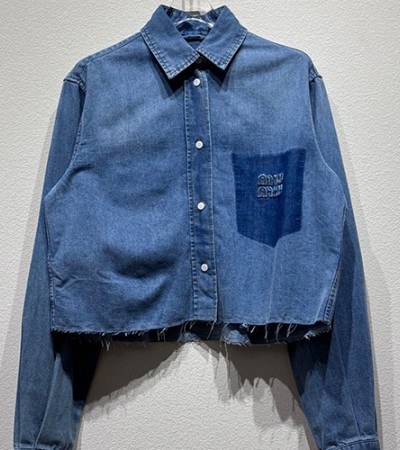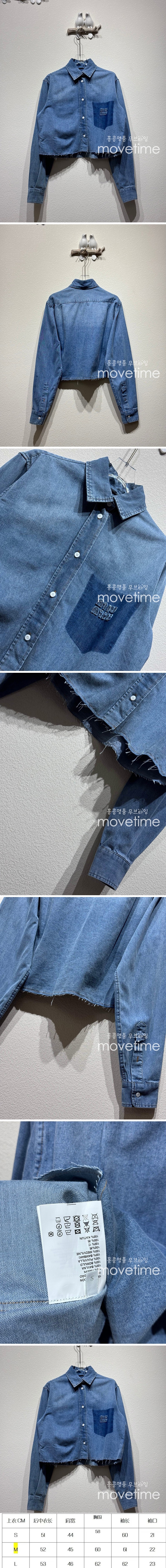 • [홍콩명품,MIU MIU] 미우미우 25SS 로고 여성 데님 쇼트 남방 셔츠, BM20943, KB, 홍콩명품의류,구매대행,온라인명품