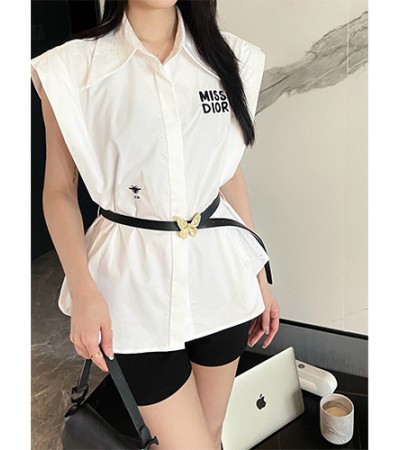 [홍콩명품,Christian Dior] 디올 25SS 로고 자수 여성 벨티드 슬리브리스 셔츠 (화이트), BM21137, COCO, 홍콩명품의류,구매대행,온라인명품 > 여성몰