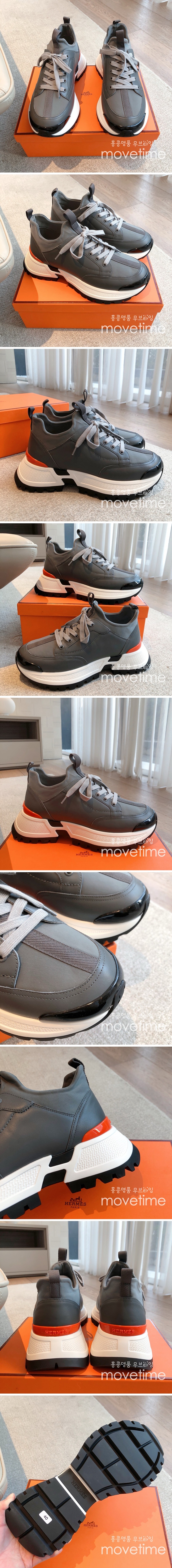 • [홍콩명품.Hermes] 에르메스 25SS 로고 레더 가죽 스니커즈 운동화 (그레이), SE5422, S3, 명품스니커즈,운동화,구두,로퍼,하이탑,신발