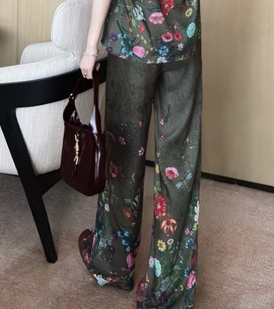 • [홍콩명품.Gucci] 구찌 25SS 로고 여성 플라워 패턴 오버핏 팬츠 바지 (브라운), BM21959, MC, 레플리카의류,미러급사이트