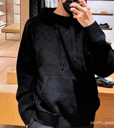 • [홍콩명품.LOUIS VUITTON] 루이비통 25SS 로고 모노그램 울 후드 티셔츠 (블랙), BM22015, KB, 레플리카의류,미러급사이트