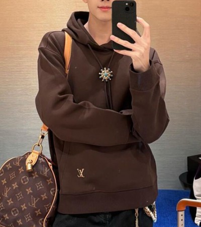 • [홍콩명품.LOUIS VUITTON] 루이비통 25SS 로고 브로치 후드 티셔츠 (브라운), BM22144, JL, 레플리카의류,미러급사이트