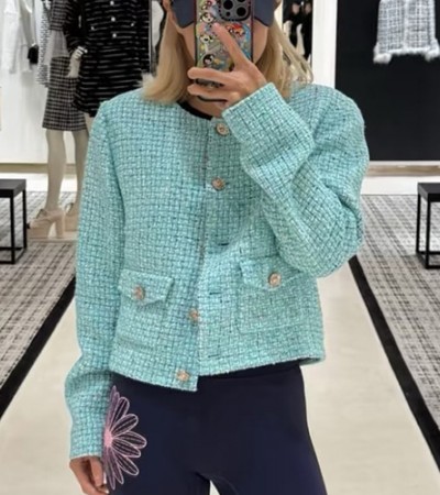 • [홍콩명품.CHANEL] 샤넬 25SS 로고 여성 라운드넥 트위드 자켓 (스카이블루), BM22188, SS, 레플리카의류,미러급사이트