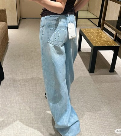 • [홍콩명품.CHANEL] 샤넬 25SS 로고 여성 오버핏 데님 팬츠 진 청바지, BM22199, SS, 레플리카의류,미러급사이트