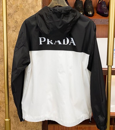 [홍콩명품,PRADA] 프라다 25SS 삼각로고 후드 바람막이 자켓 (블랙-화이트), BM22242, S1F, 레플리카의류,미러급사이트 > 남자의류