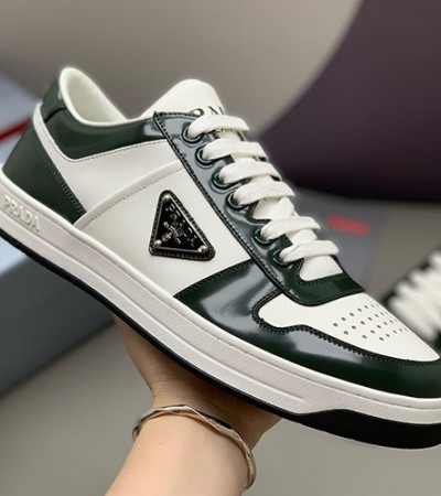 [홍콩명품,PRADA] 프라다 25SS 삼각로고 레더 가죽 로우탑 스니커즈 운동화 (화이트-그린), SE5478, PMD, 명품스니커즈,운동화,구두,로퍼,하이탑,신발 > 신발