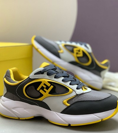 • [홍콩명품,FENDI] 펜디 25SS 로고 남여 레더 가죽 스니커즈 운동화 (그레이-노랑), SE5483, PMD, 명품스니커즈,운동화,구두,로퍼,하이탑,신발
