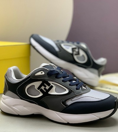 • [홍콩명품,FENDI] 펜디 25SS 로고 남여 레더 가죽 스니커즈 운동화 (네이비-그레이), SE5484, PMD, 명품스니커즈,운동화,구두,로퍼,하이탑,신발