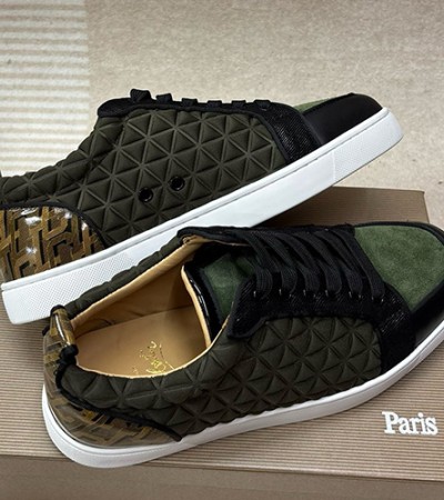 • [홍콩명품.Christian Louboutin] 크리스챤루부탱 25SS 로고 레더 가죽 스니커즈 운동화 (블랙-카키), SE5500, H3, 명품스니커즈,운동화,구두,로퍼,하이탑,신발