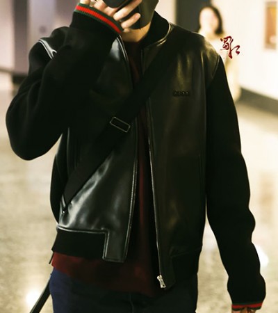 • [홍콩명품.Gucci] 구찌 25SS 로고 레더 가죽 레이어드 봄버 자켓 (블랙), BM22376, SS, 레플리카의류,미러급사이트