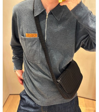 • [홍콩명품.BOTTEGA VENETA] 보테가베네타 25SS 로고 하프지퍼 카라 긴팔 티셔츠 (그레이), BM22415, KB, 레플리카의류,미러급사이트