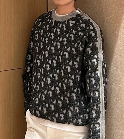 • [홍콩명품,Christian Dior] 디올 25SS 로고 오블리크 니트 스웨터 (그레이), BM22424, KB, 레플리카의류,미러급사이트